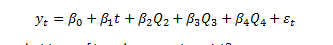 Question 2: The quarterly sales of the TRK-50 mountain bike for the previous four years by a bicycle shop in Switzerland (attached). Use Stata to generate a scatter plot of sales versus time. Next, use Stata to estimate the following model